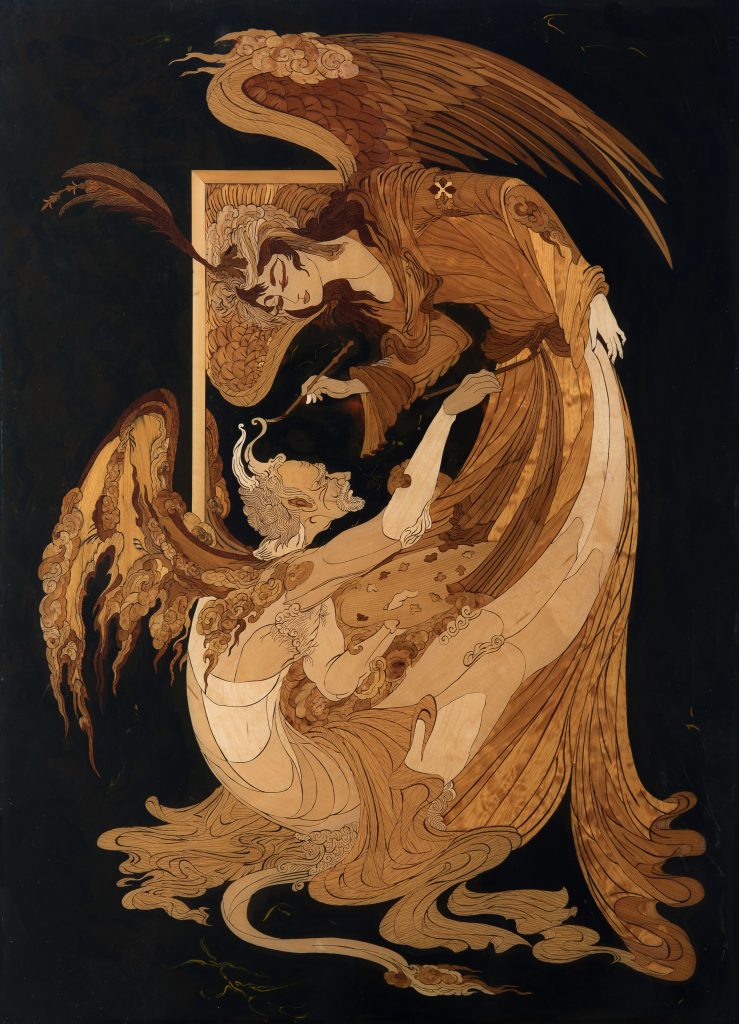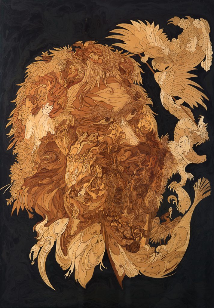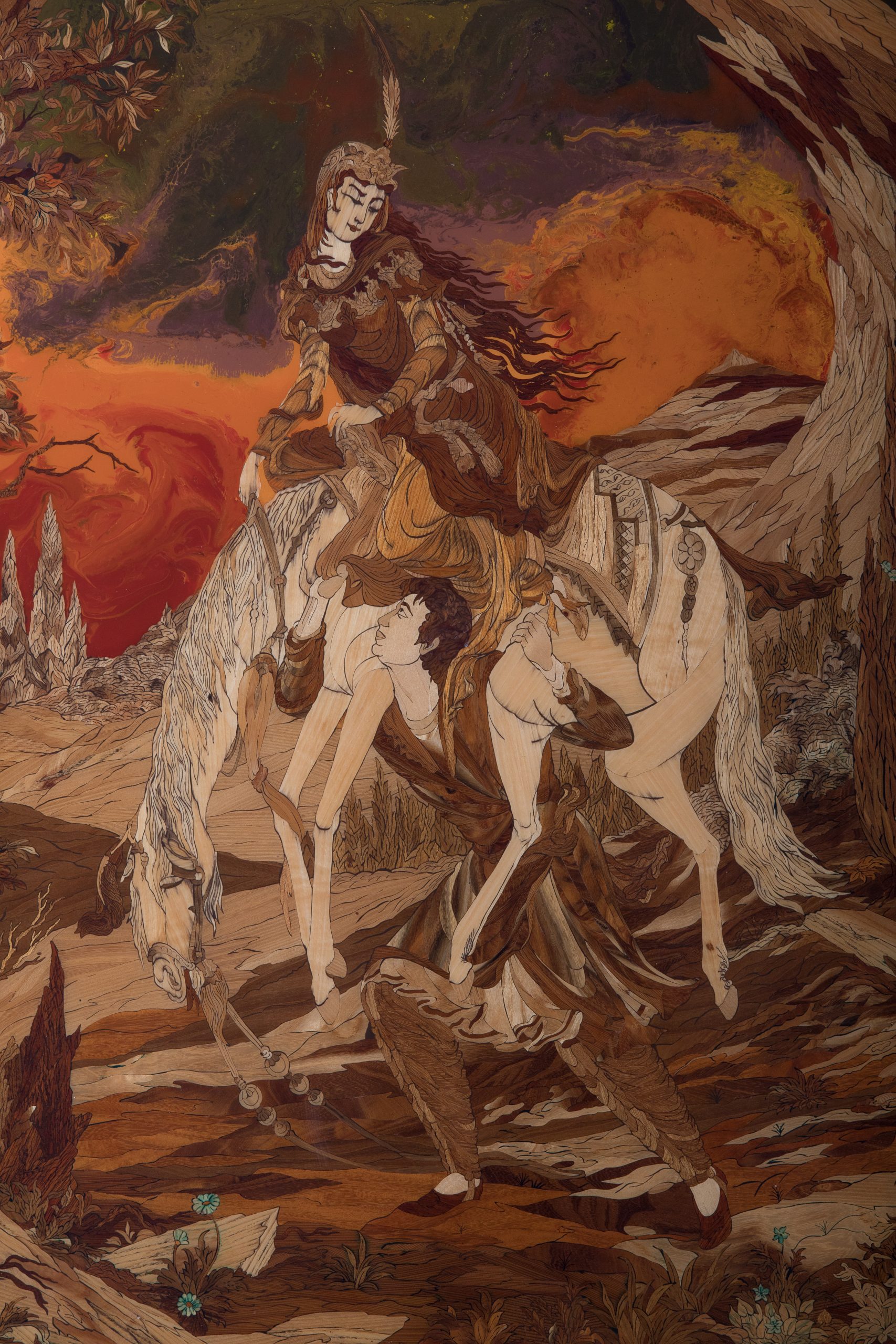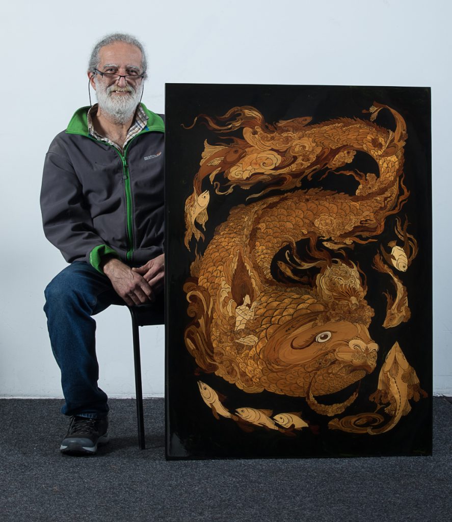 Inlegwerk geinspireerd door Mahmoud Farshian, Getekende Glaswerk, Grandmasterpiece van begin tot einde,