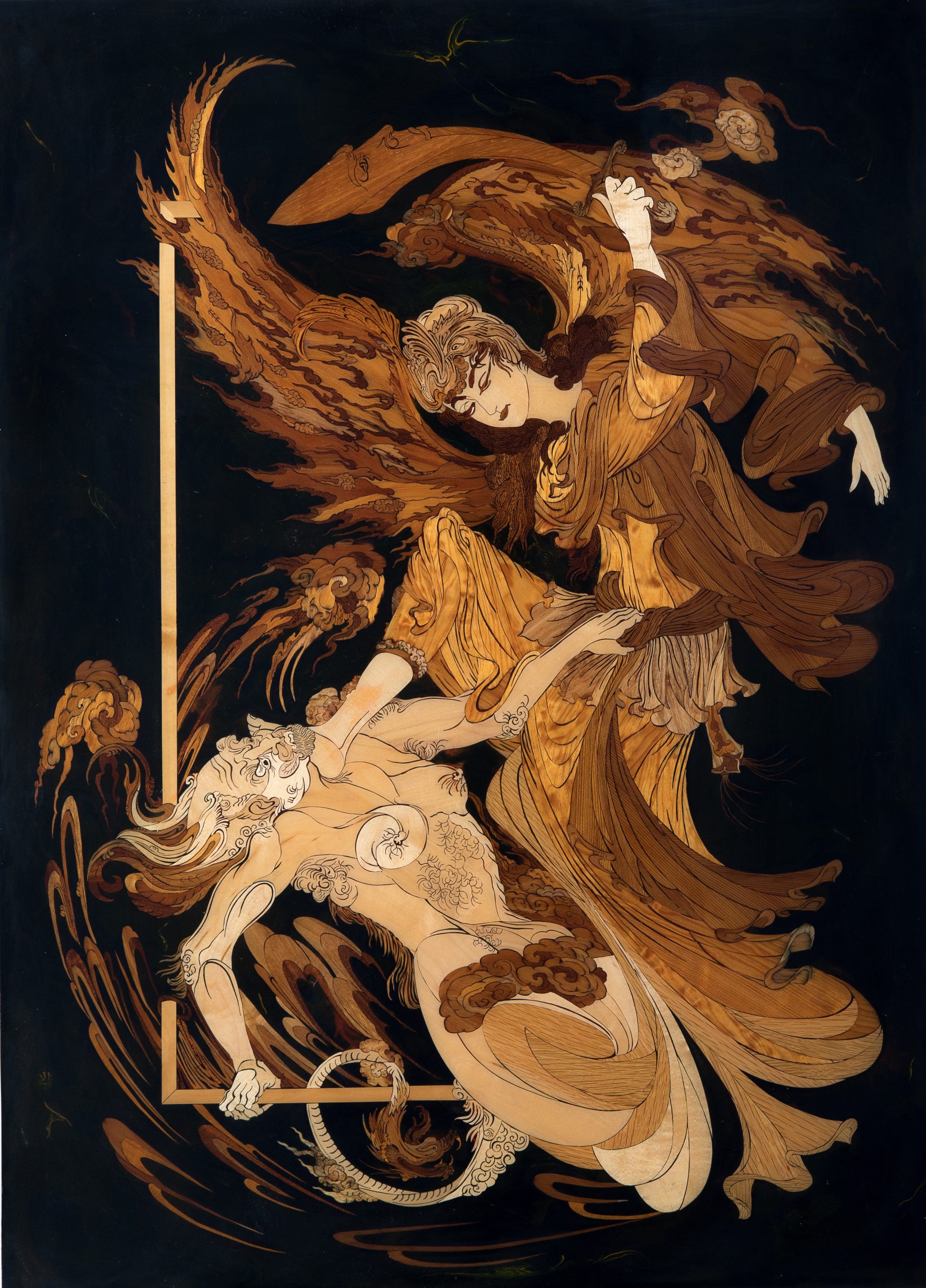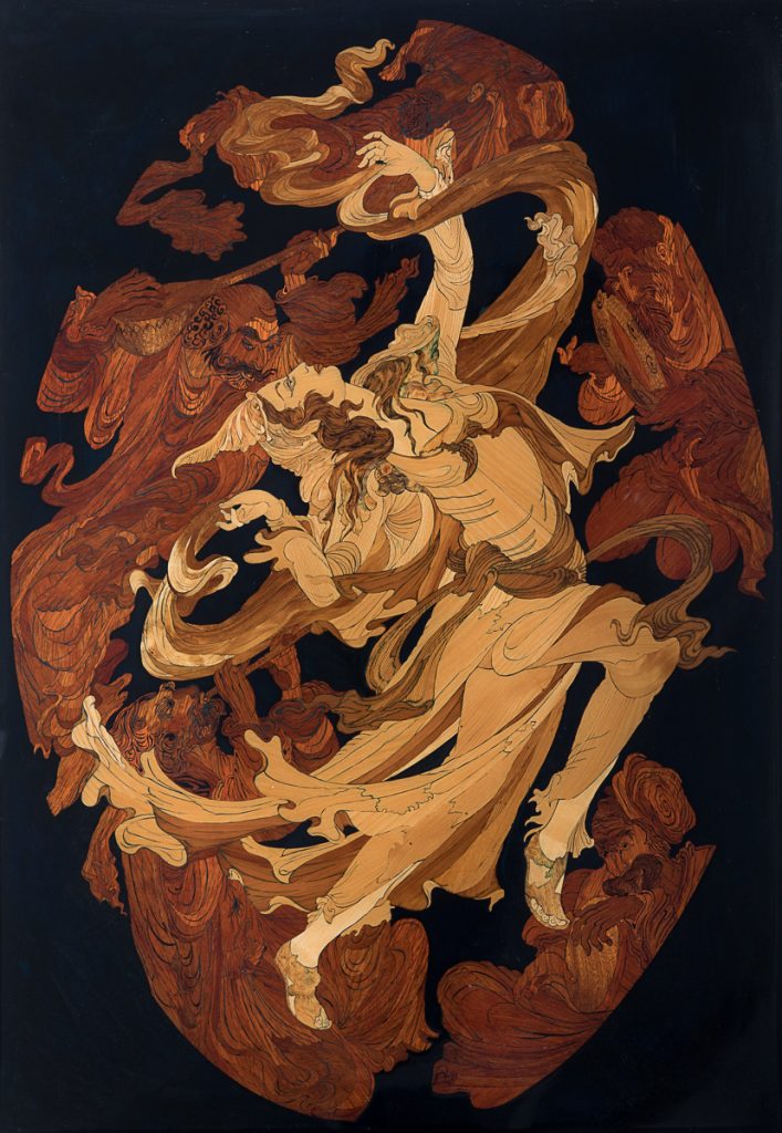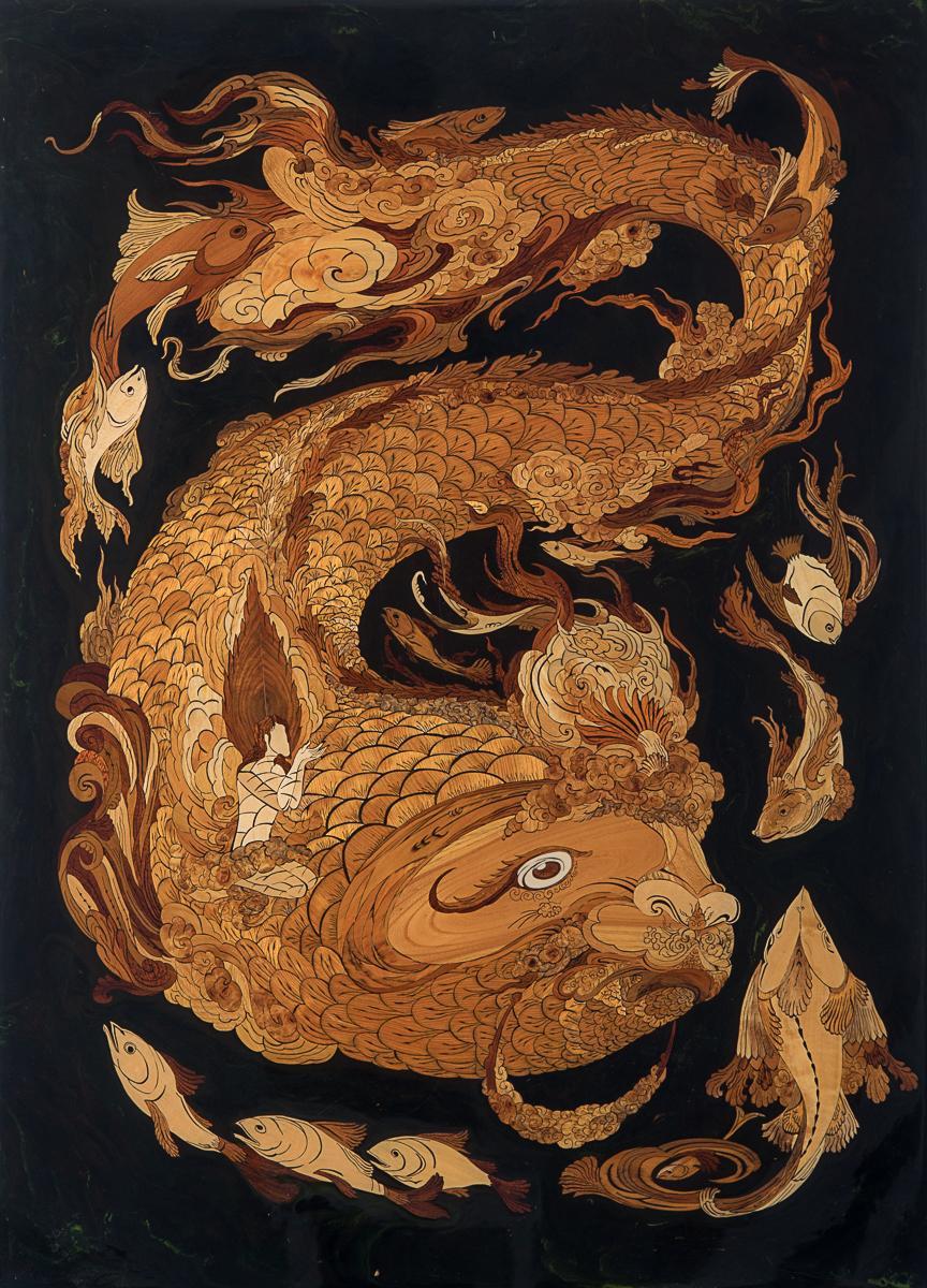 Inlegwerk geinspireerd door Mahmoud Farshian, Getekende Glaswerk, Grandmasterpiece van begin tot einde,